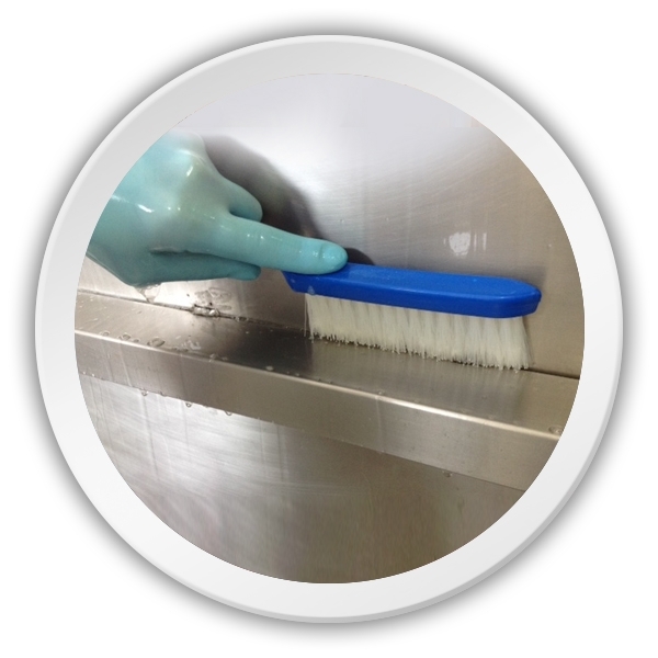 Cepillo multiuso para limpieza en líneas de producción y maquinaria. Ideal para la limpieza de canaletas, maquinaria, cinta de transporte, etc.
